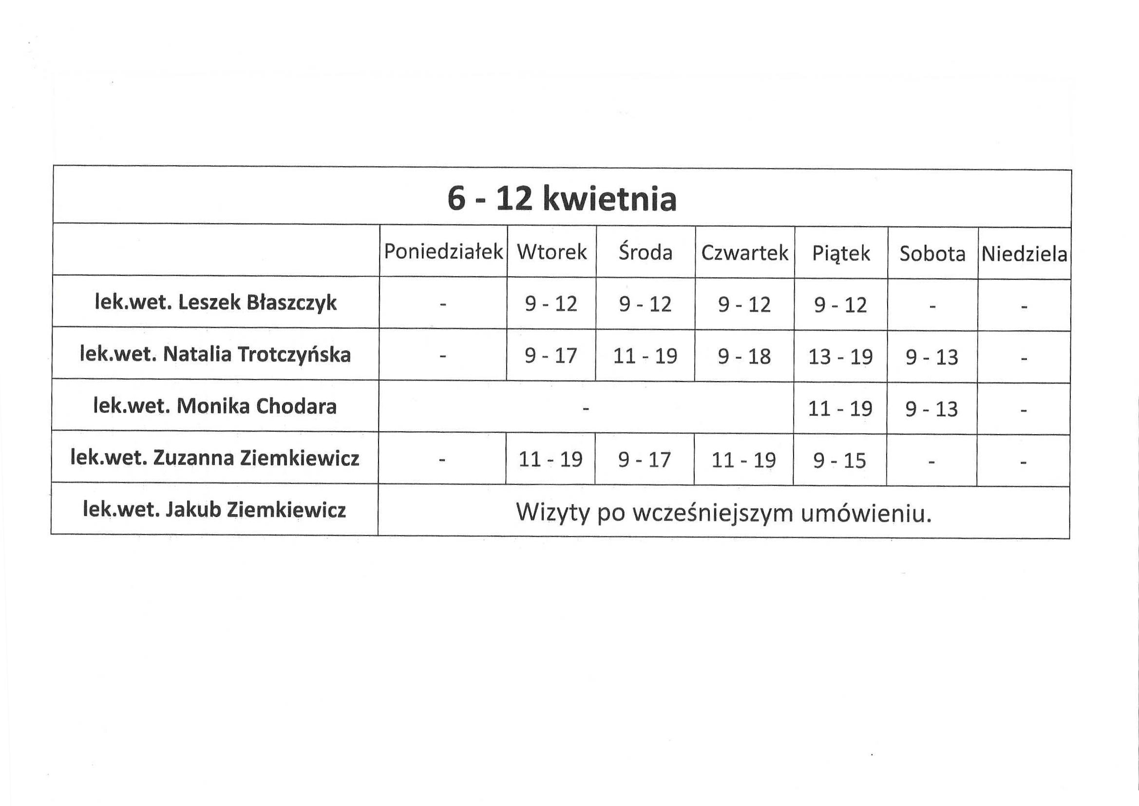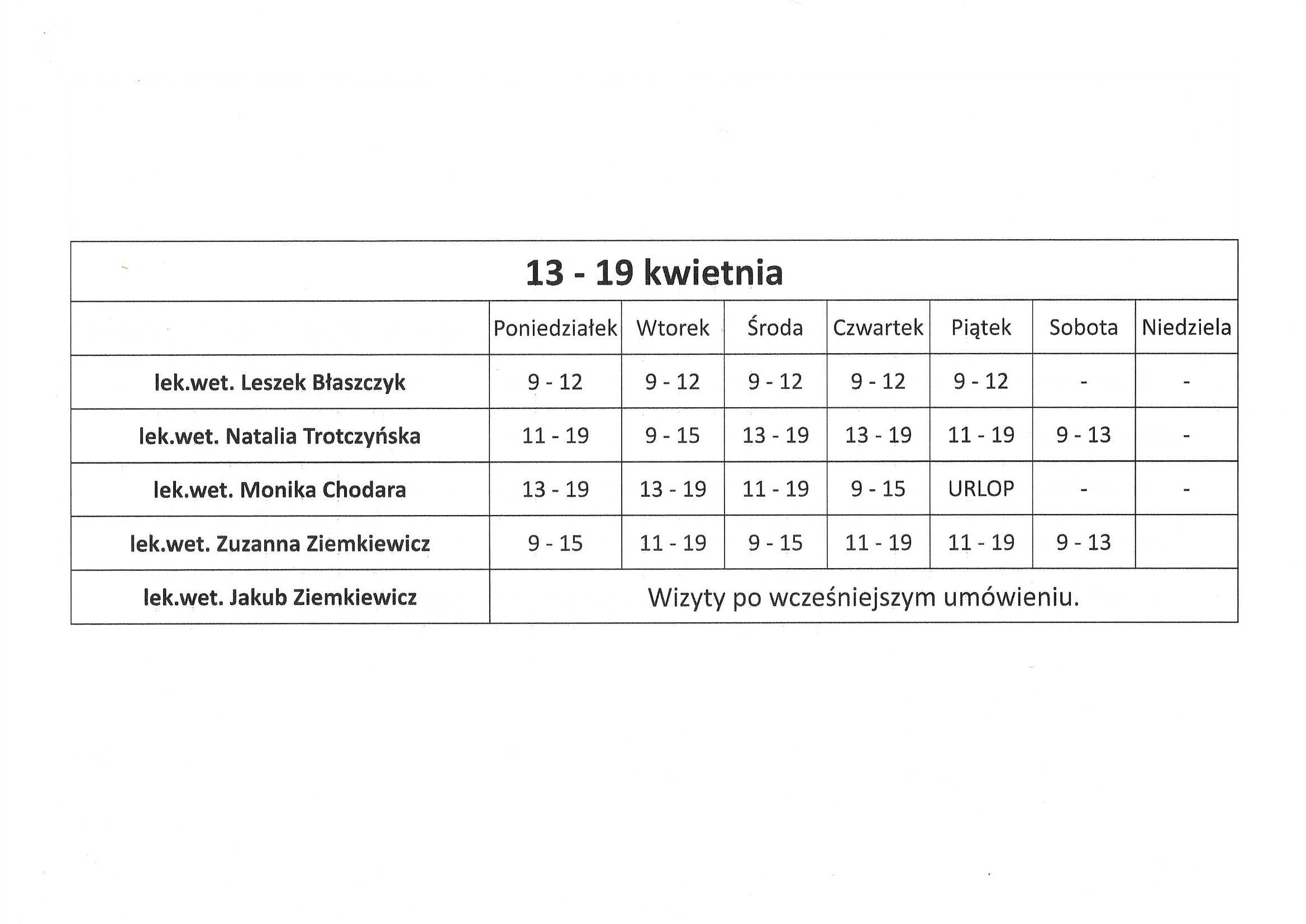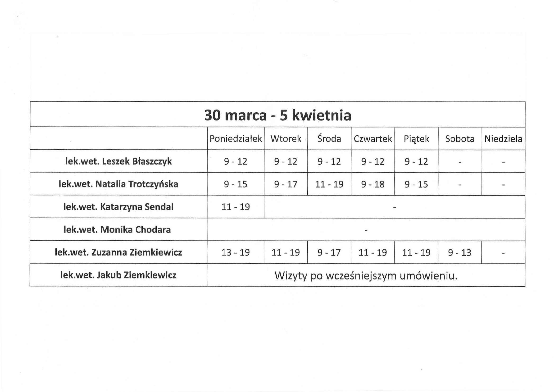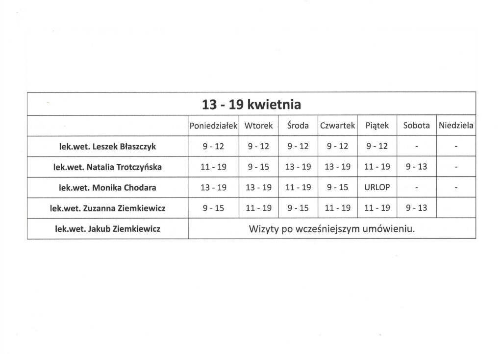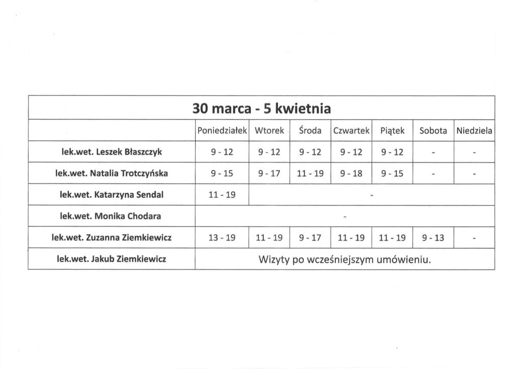 lek.wet. Monika Chodara – nieobecna 23 marca – 9 kwietnia