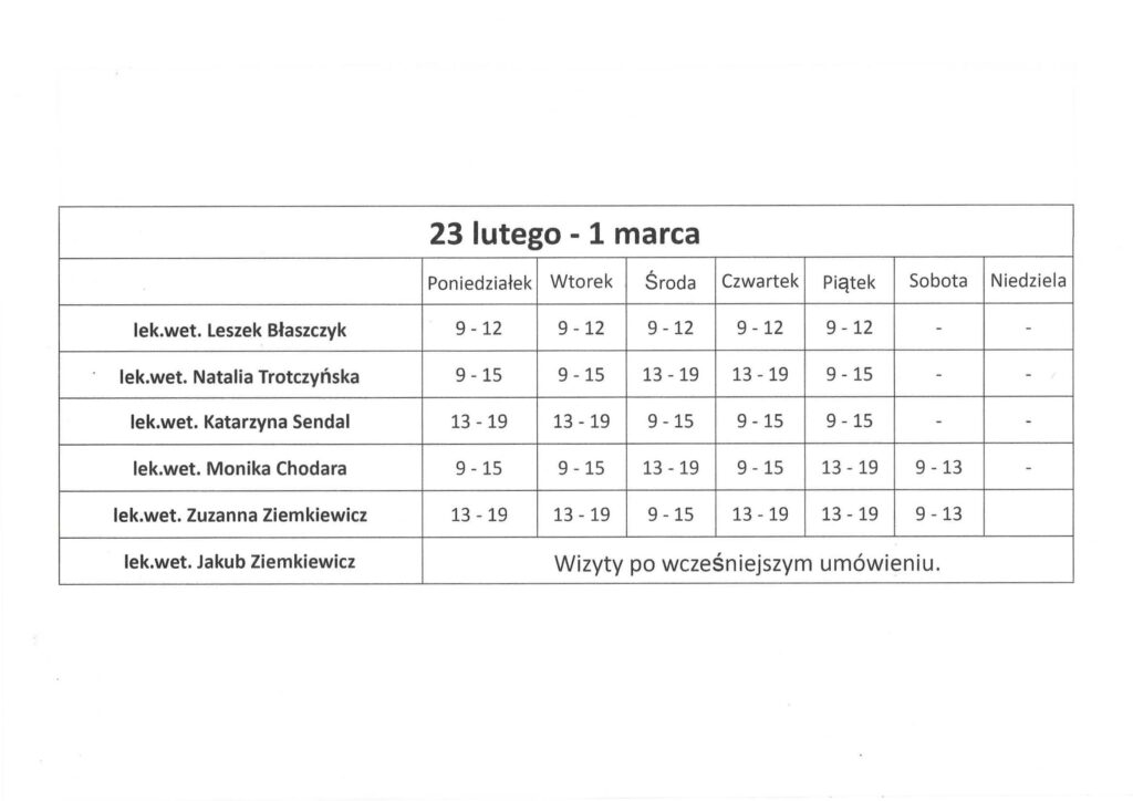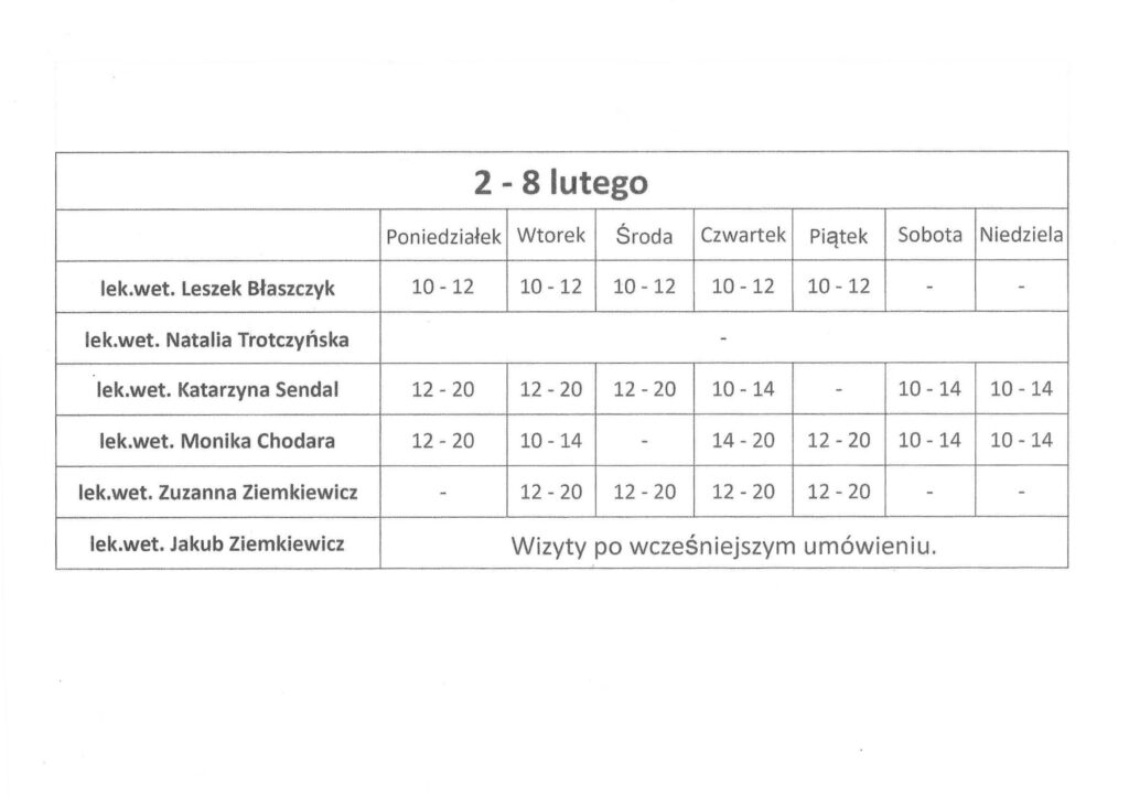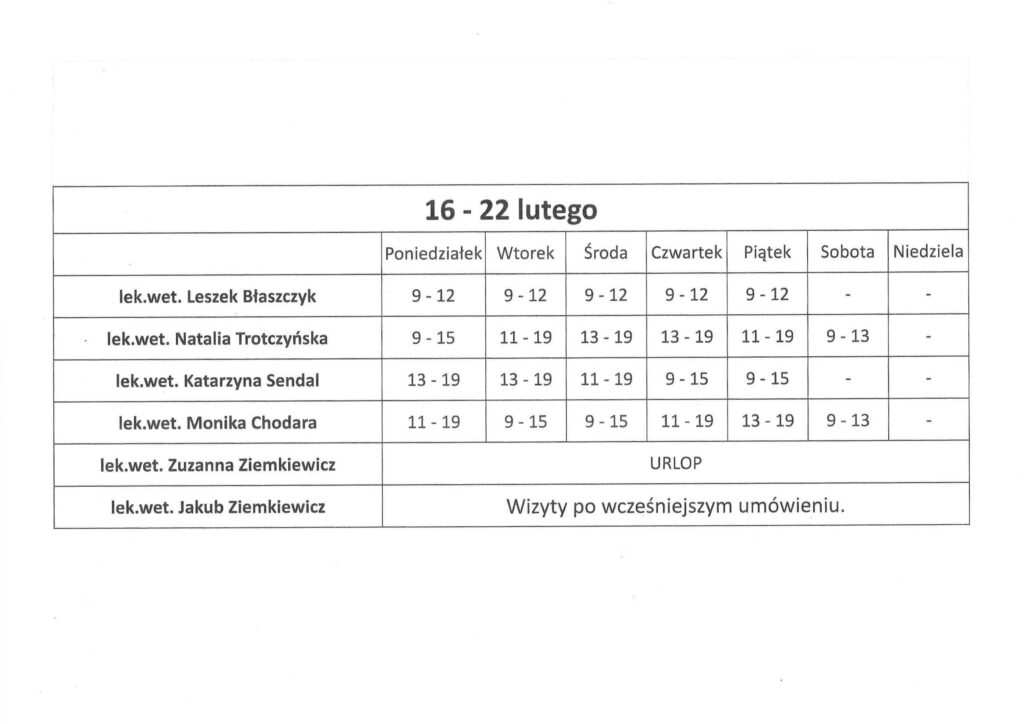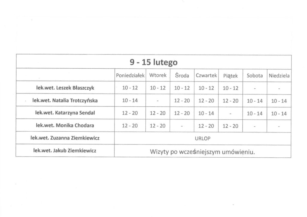lek.wet. Zuzanna Ziemkiewicz – urlop 8 – 22 lutego